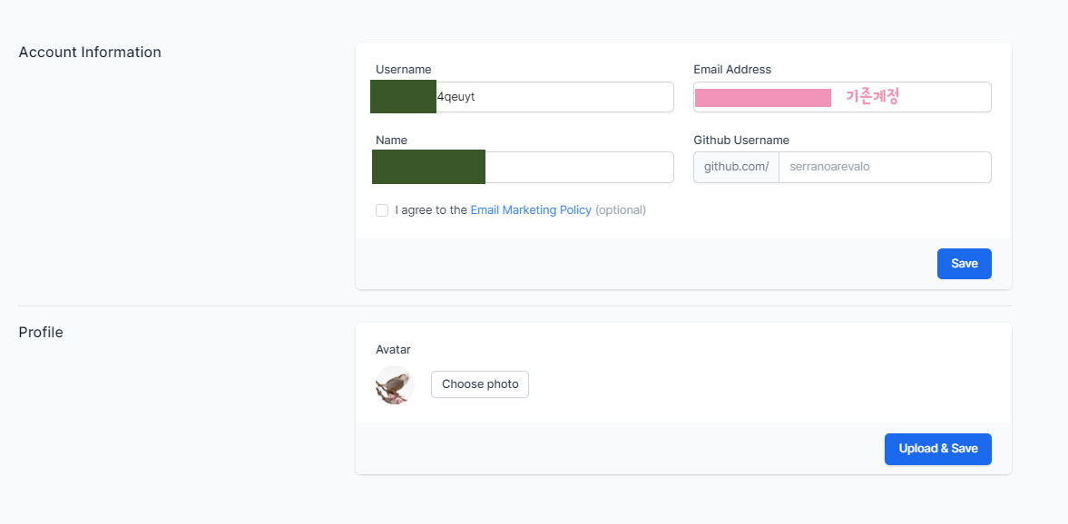 카카오톡 계정으로 가입 후 프로필에서 자주 쓰는 이메일로 변경했습니다. (사진상 분홍색 칸)