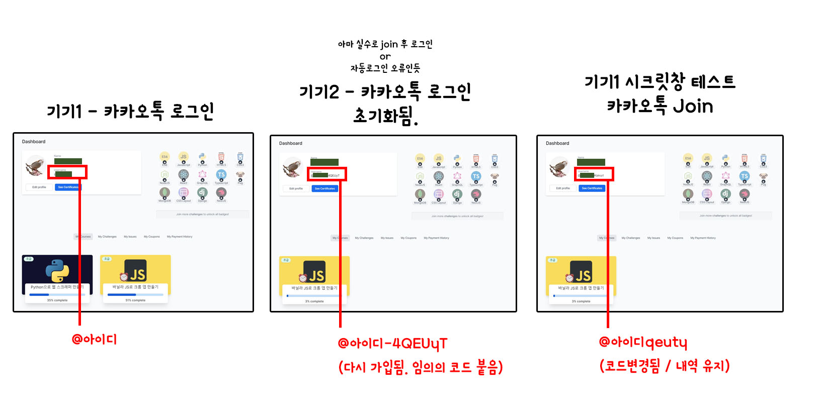 기기2에서 자동로그인 때문에 제 가입이 된건지 아이디 뒤에 코드가 붙고 다르게 가입이 되더라구요.